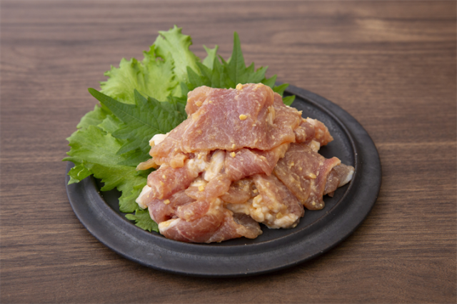 柔らかいモモ肉を、優しい味わいの味噌で漬けた人気商品です。甘みと旨みがしっかり染み込み、ごはんが進みます。フライパンで焼くだけで夕食の主役に。冷めてもおいしいので、お弁当のおかずにもおすすめです。使用しているお肉は和豚もちぶた100%です。