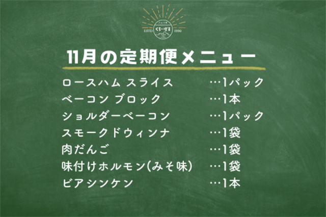 ハムから1アイテム、ベーコンから1アイテム、ウィンナから1アイテム、その他ショップのおすすめ商品を2〜4アイテム程度お届けします。