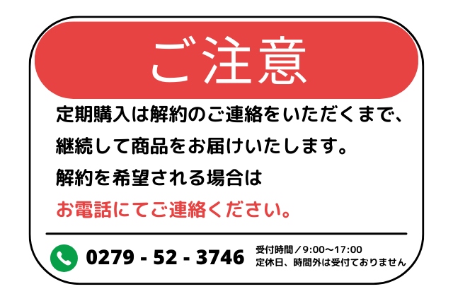 定期購入は解約のご連絡をいただくまで、継続して商品をお届けいたします。