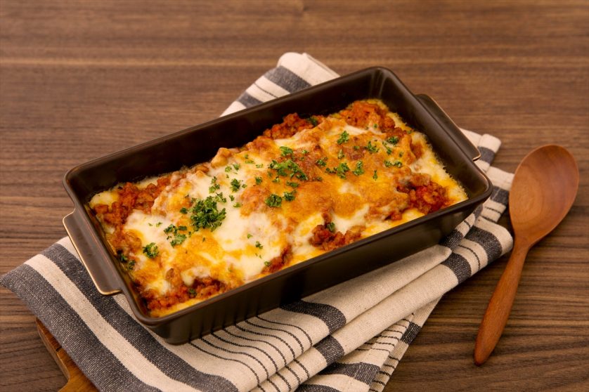 和豚もちぶたの旨みがギュッと詰まった“基本のミートソース”と濃厚マッシュポテトのシンプルなグラタンは間違いなしの美味しさ。炒めたナスを間に挟んでも美味しいですよ。