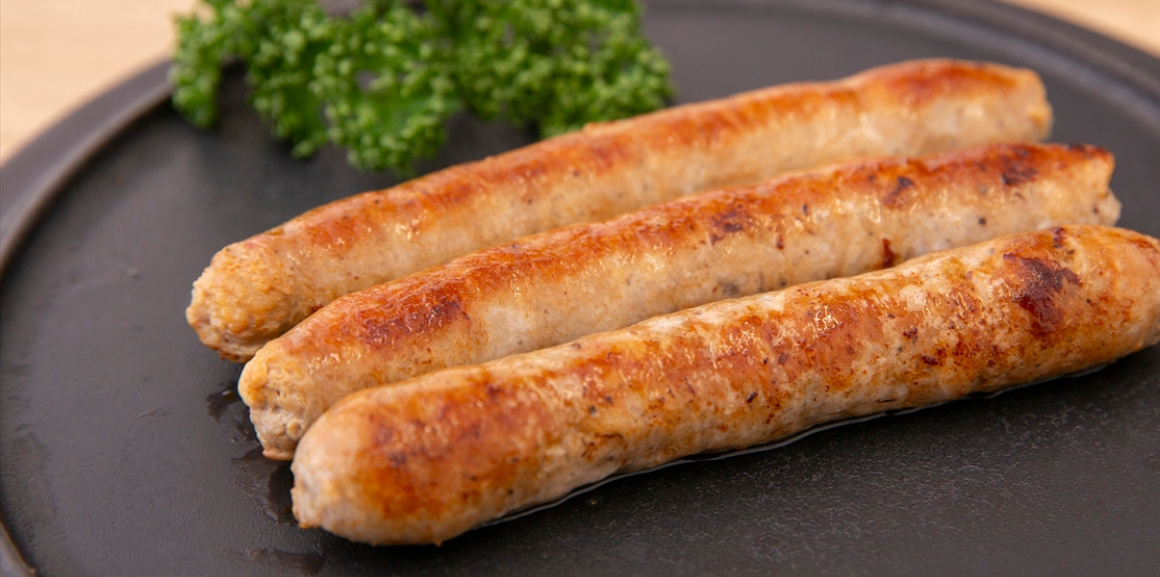 粗挽き生ソーセージは、じっくり火を通すことが美味しさの秘訣です。最初に表面を香ばしく焼き上げてから少量の水を加えて蒸し焼きにすることで、外はパリッと、中はジューシーに仕上がります。