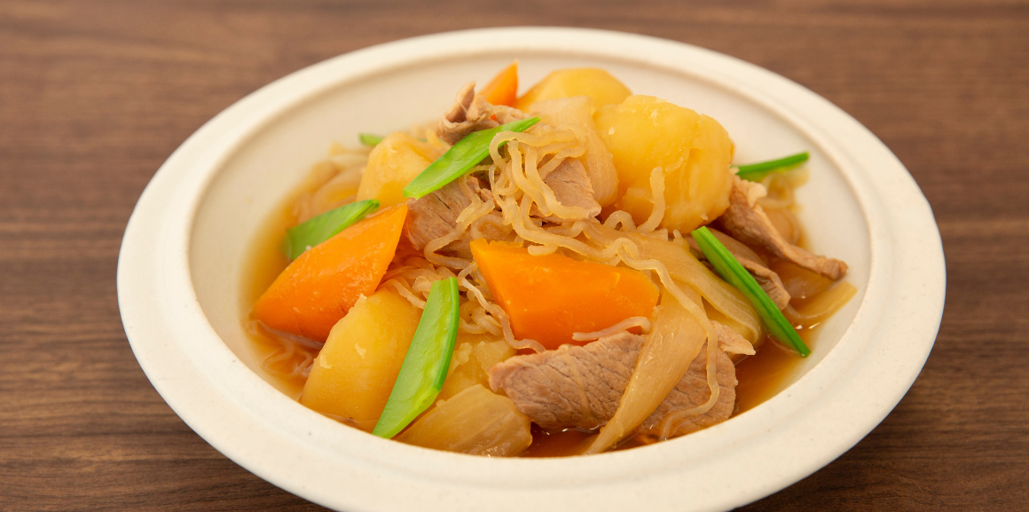 じゃがいもと玉ねぎのやさしい味わいに豚肉のうま味がプラスされ、食べ飽きない美味しさ。翌日の味のしみ込んだ肉じゃがも格別です。