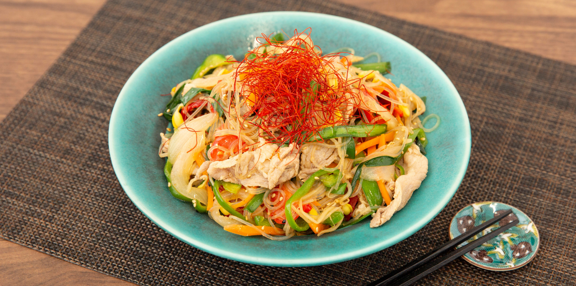 韓国の家庭料理 モモ肉で作る チャプチェ